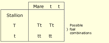 Let's just do one more - this time using our homozygous (TT) horse from the last calculation, and crossing him with a solid (tt) mare