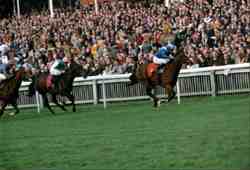 | All photographs in this article by Lesley I Sampson Comprehensive library of Colour Prints available. MAIL ORDER SERVICE (Send SAE for Price List and indicate any horses of specific interest) All 5 Classic Races covered annually and major meetings at the following courses: Ascot, Epsom, Newmarket, Doncaster, Kempton, Sandown and York plus the winter all-weather racing at Lingfield. Well known horses on file include: Dancing Brave, Nashwan, Lammtarra, Sadlers Wells, Pebbles, El Gran Senor, Oh So Sharp and Xaar plus many others less famous! Photographs available for advertising and editorial purposes including extensive stud visits, well known horses as Stallions, or even as foals and yearlings. Tattersalls Sales covered. Standard reproduction rates. Commissions undertaken Blue Riband Photos, 5 London Road Cottages, Newmarket, Suffolk CB8 0TW Tel: 01638 661256 |