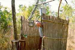 As we carried our saddle bags a short distance to the tented camp area, Jane stopped to examine some tracks. She thought a Leopard had been through the camp the night before. I was not sure whether to be excited or nervous, Jane seemed calm and therefore I took my queue from her. We had a refreshing drink before being shown our tent which was secluded and in the most fabulous location overlooking a deep gorge to a rushing river. We had our own ensuite bucket shower room which had been filled with water warmed in the fire already and waiting for us. This was the best shower of my life!