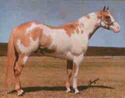 | This very typey Paint stallion is showing the Quater Horse heritage of his breed very clearly. Isn't this just the kind of horse we imagie the Native American Indians riding across the prairie on? |